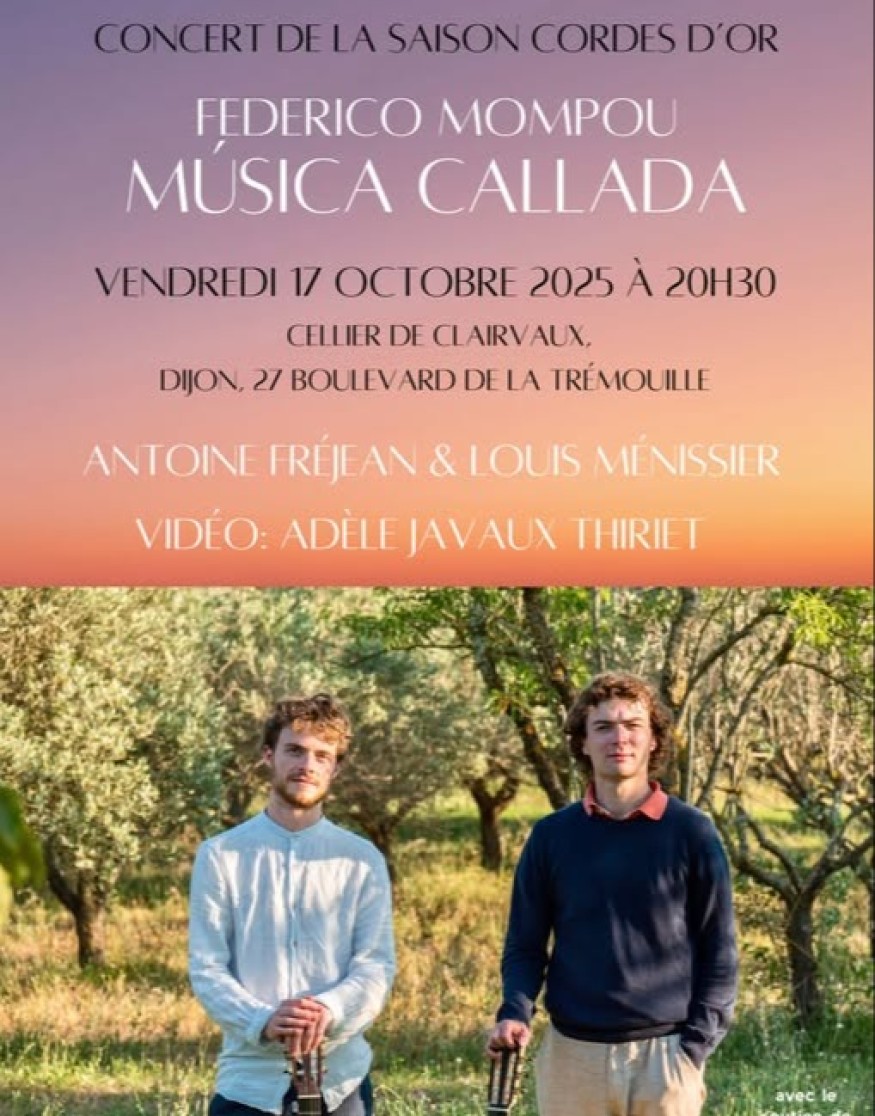 Il présente le concert Musica Callada, une œuvre composée par Federico Mompou, qui sera interprétée par Antoine Fréjean et Louis Ménissier, un duo de guitaristes débutant leur carrière en tant qu’enseignants et interprètes.
